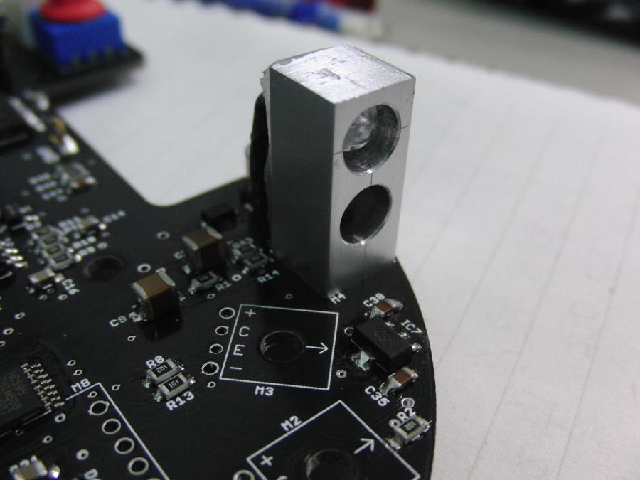 金具にLEDとフォトトランジスタを固定。