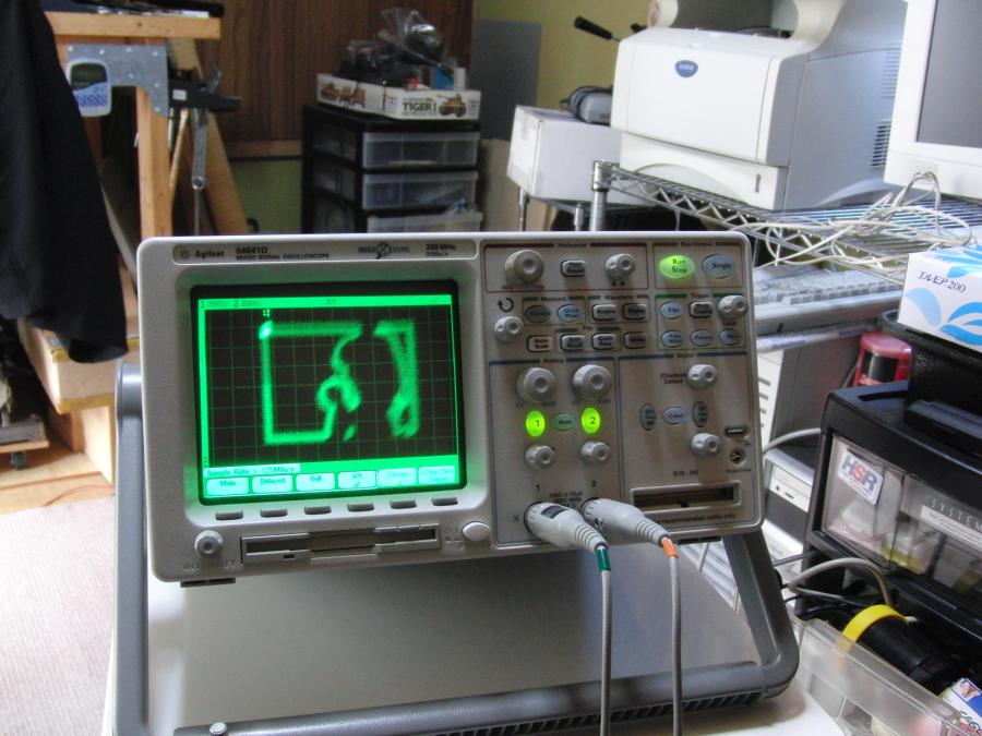 本当は、アナログオシロのX-Yモードに表示させて