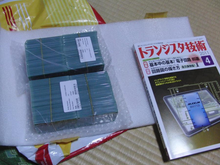 PCBCARTに注文した基板100枚が到着。