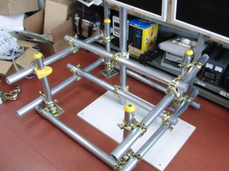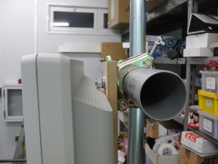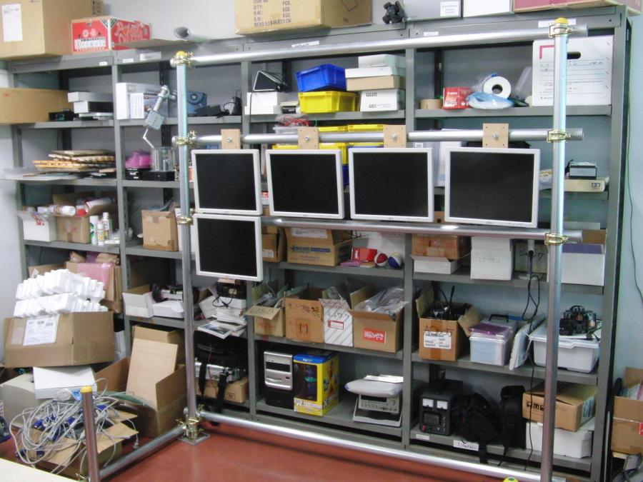 単管パイプに取り付けたディスプレーを